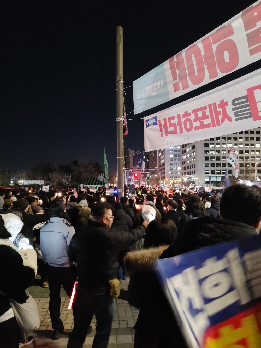 시위가 있는데 주변을 둘러싸는 데는 부족하다.