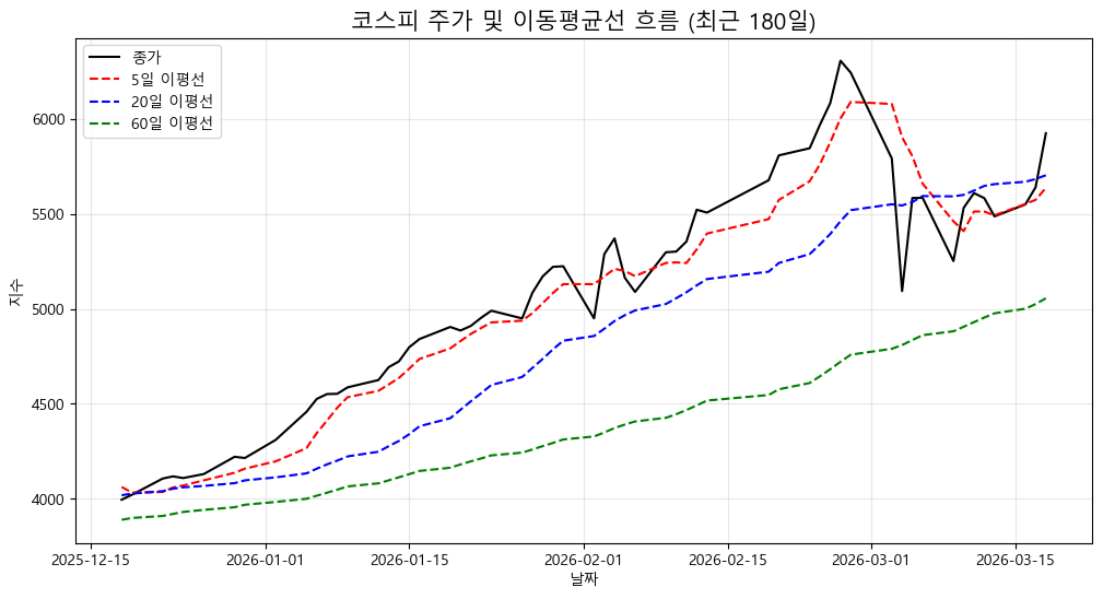상승 추세, 긍정적인 모멘텀, 그리고 양호한 수급까지 주가가 오르기 위한 이상적인 조건들이 높은 확률로 맞아떨어지고 있습니다. 뚜렷한 하락 위험이나 과열 징후가 보이지 않기 때문에, 현재 상황을 코스피의 수익 창출 기회로 판단하여 '🔥 적극 매수 권고'를 최종 결론으로 도출했습니다.