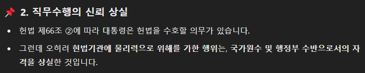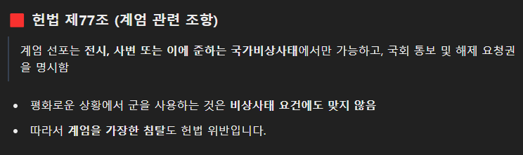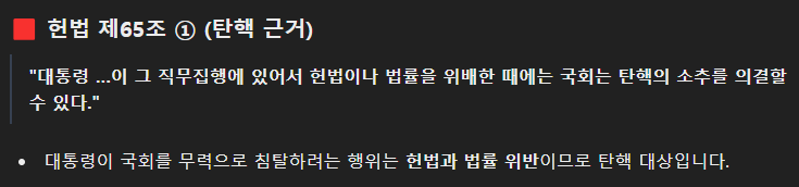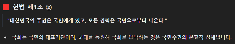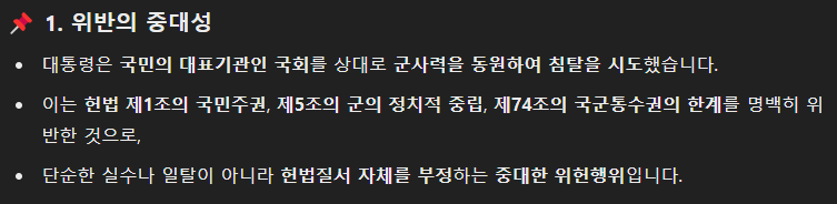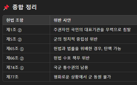 판결에 사용한 내용. (평화시 군을 동원한 국회 침탈 시도!)