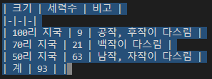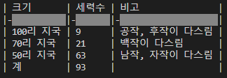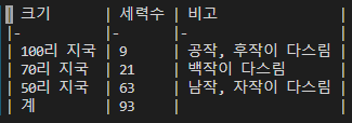 | 100리 지국 | 9 | 공작, 후작이 다스림 |