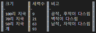 | 100리 지국 | 9 | 공작, 후작이 다스림 |