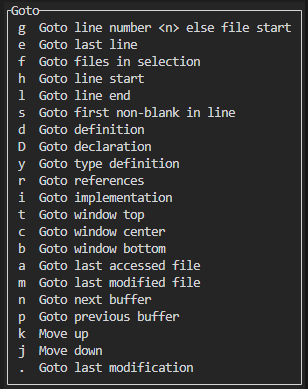 일반 모드에서 g 키를 입력하여 Goto 모드 팝업을 띄웁니다.