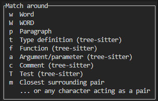 | a | 개체 주변을 선택한다. | select_textobject_around |