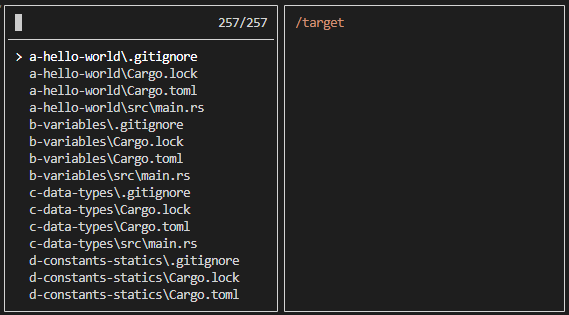 | s | trait, struct, enum, function, 심볼 픽커를 팝업. | symbol_picker |