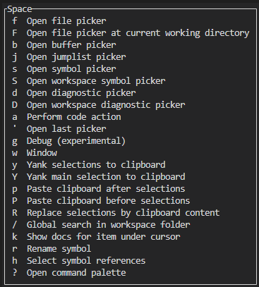 | S | trait, struct, enum 픽커 팝업. | workspace_symbol_picker |