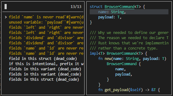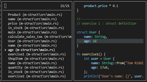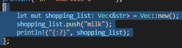사용법이 궁금한 아이템 위에서 println! 위에서 space, k |