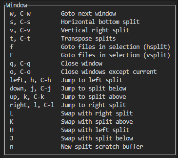 C-w 하여 창모드 전환 v 하여 세로로 화면 분할 w 하여 다음 윈도우로 커서 이동. |