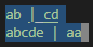 선택 영역의 우측 공백 확인. Alt + s 하면 모든 라인에 커서 생성. _ 하면 우측 공백 제거(trim). 공백 없는 선택 완성. (실제 공백은 그대로) |